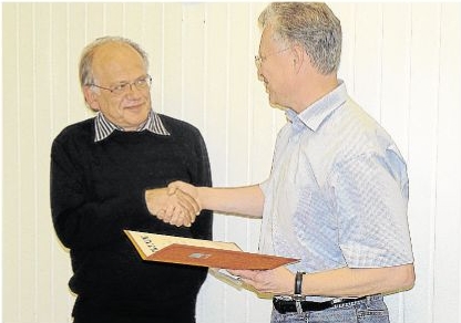 Claus-Harry Becker wird von Frank Puchtler für 40 Jahre SPD Parteizugehörigkeit geehrt. Foto: Wilma Rücker