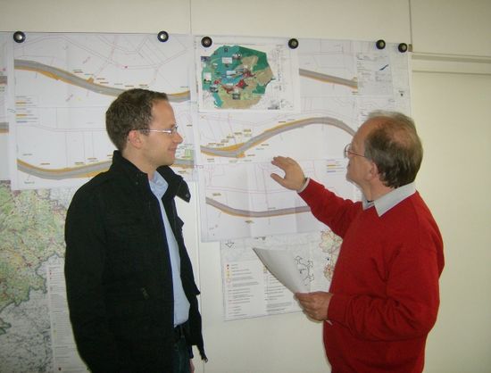 Ortsbeigeordneter Claus-Harry Becker informierte Björn Walden über die neue Schwerpunktgemeinde Burgschwalbach. Burgschwalbach plant in den nächsten Jahren im Rahmen des Prozesses der Schwerpunktgemeinde zahlreiche Dorferneuerungsprojekte umzusetzen. Weitere Themen des Informationsgespräches und Ortsrundganges waren die geplante Regionalakademie im Aartal und der vorgesehene Fernwanderweg "Nassauer Weg" über hessisches und rheinland-pfälzisches Gebiet.